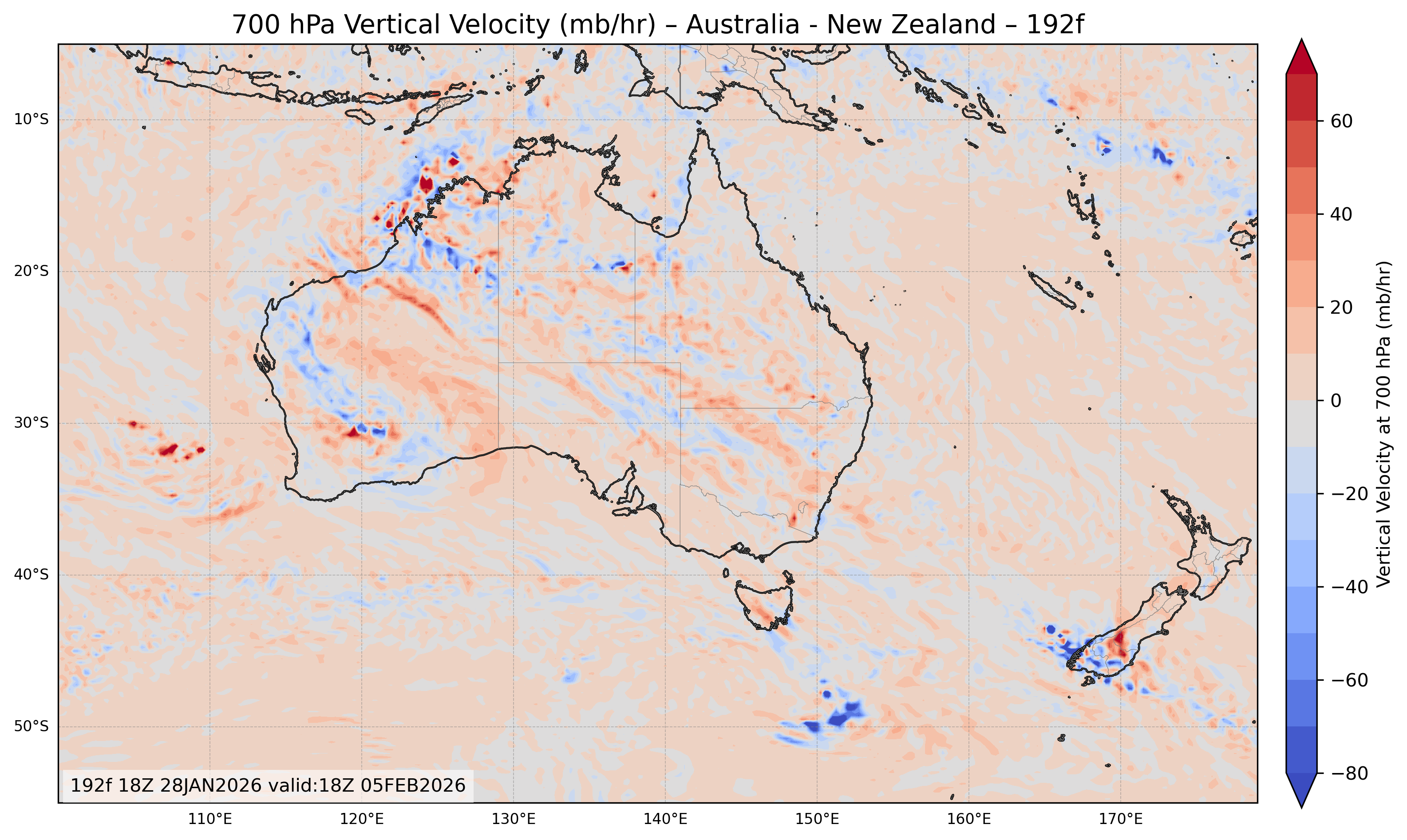 Australia and New Zealand 700 mb Vertical Velocity 192 Forecast