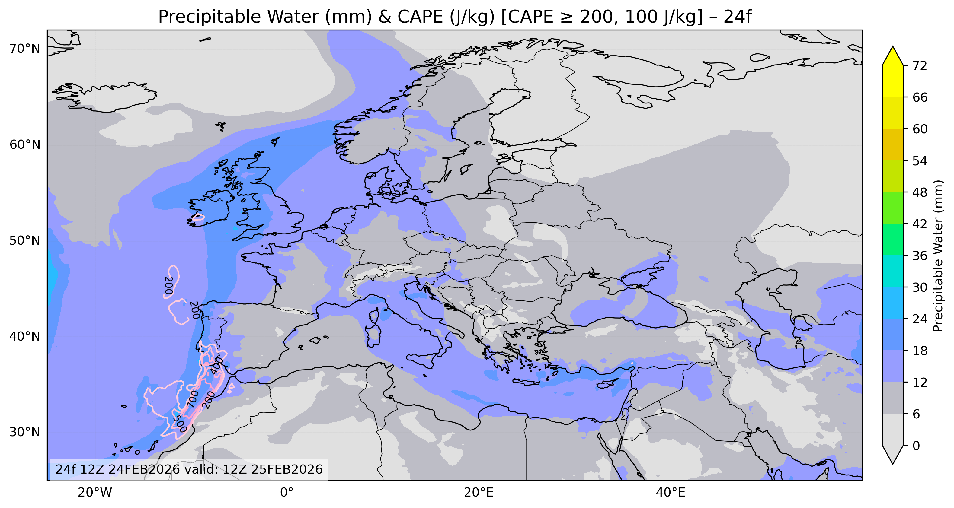 Europa Precipitable Water Cape 24 Forecast