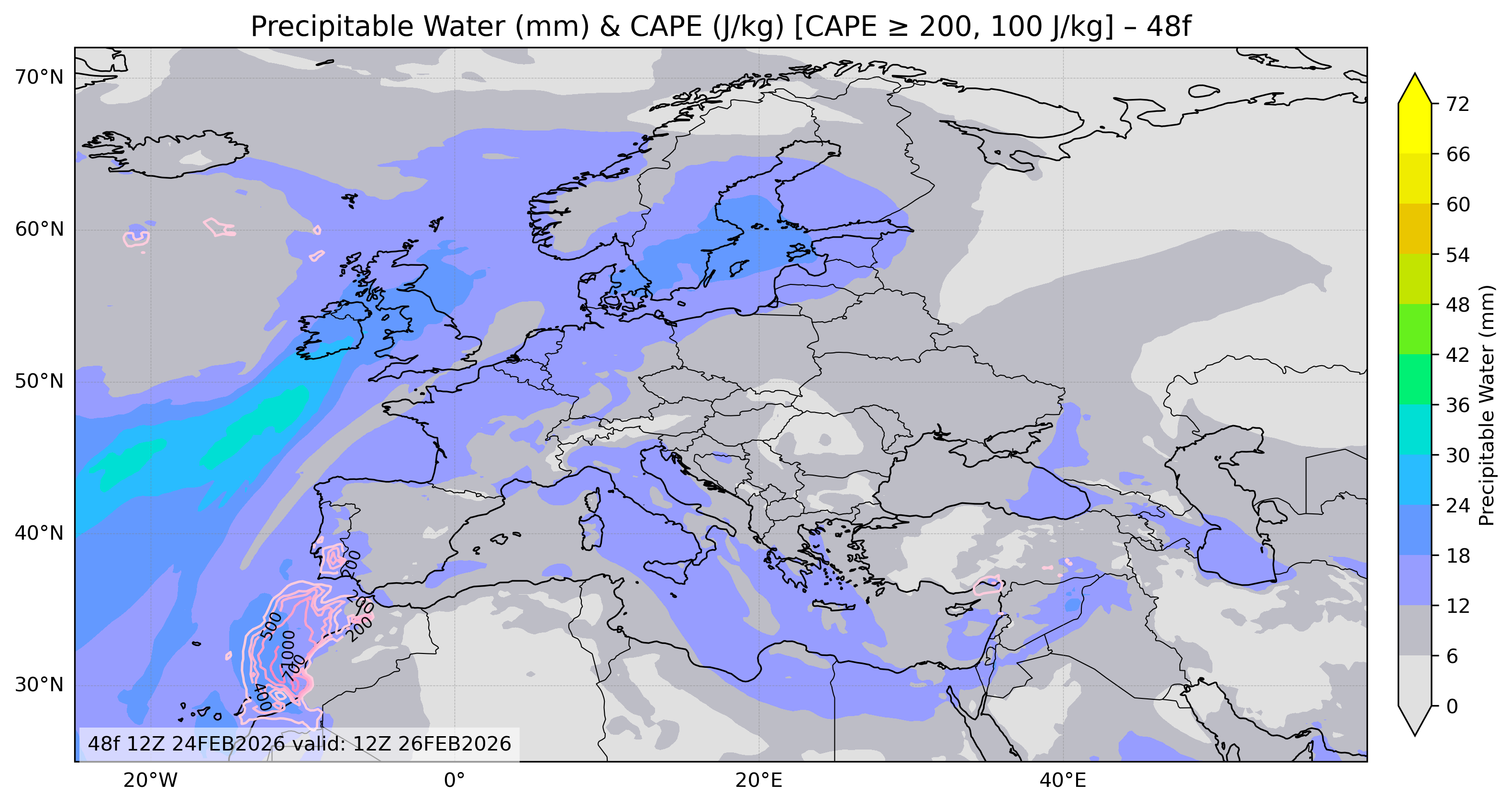 Europa Precipitable Water Cape 48 Forecast