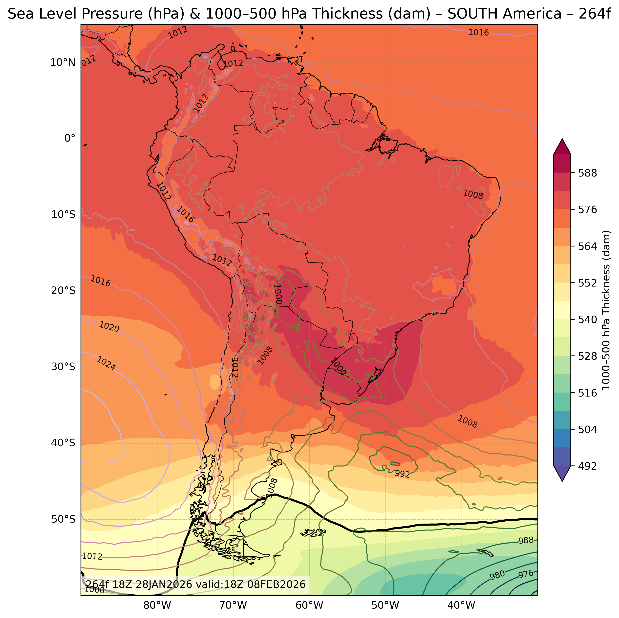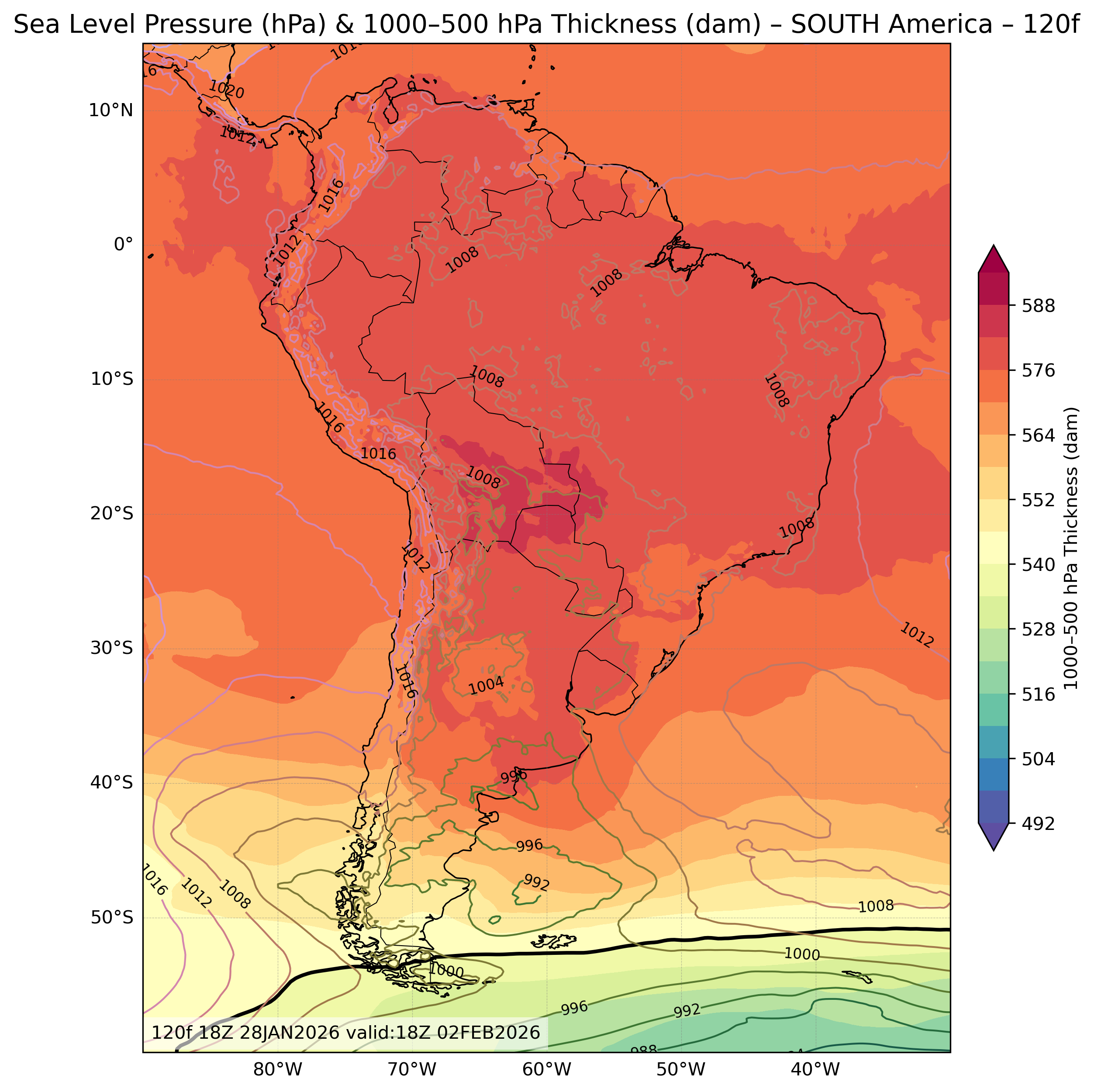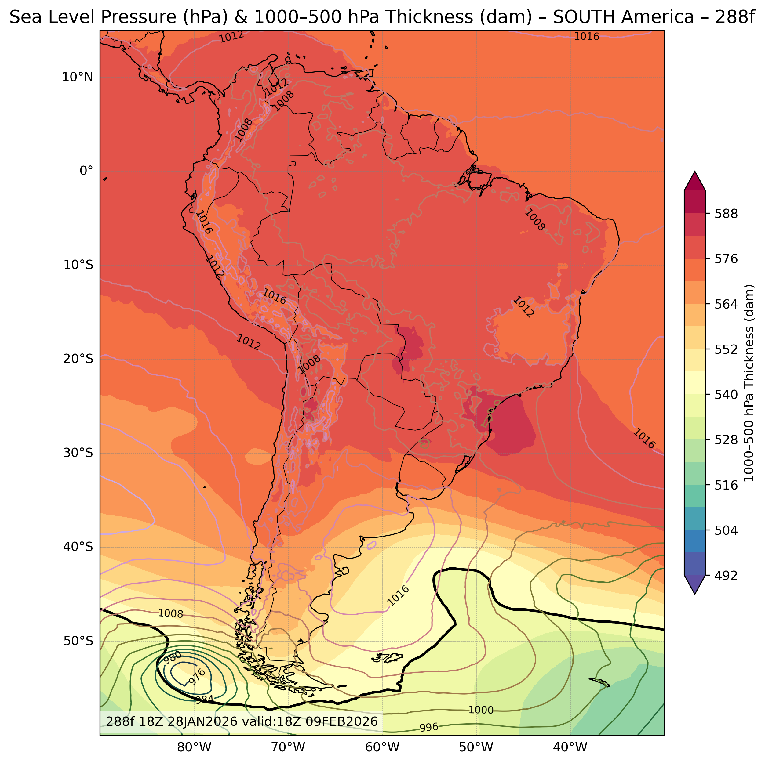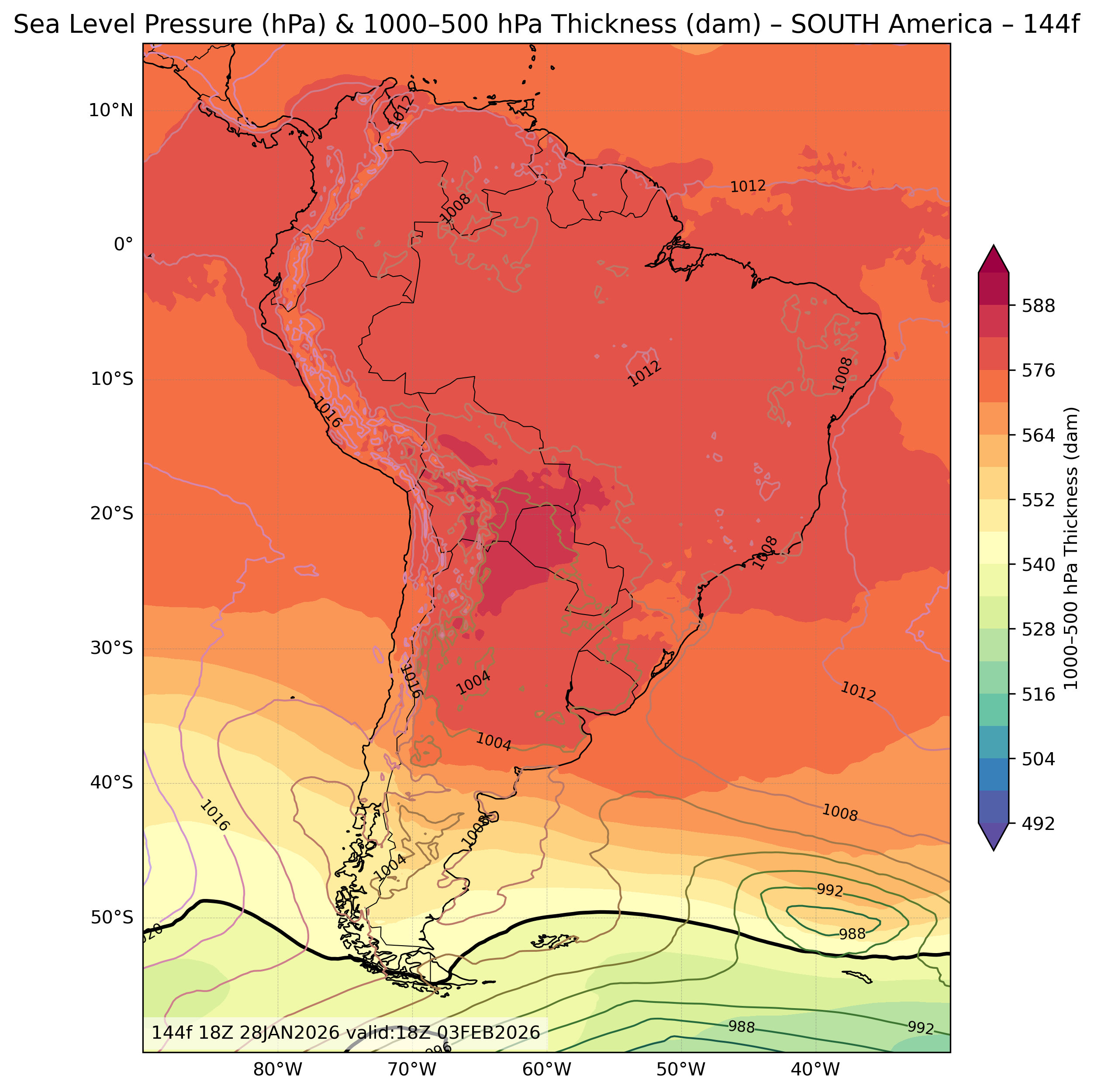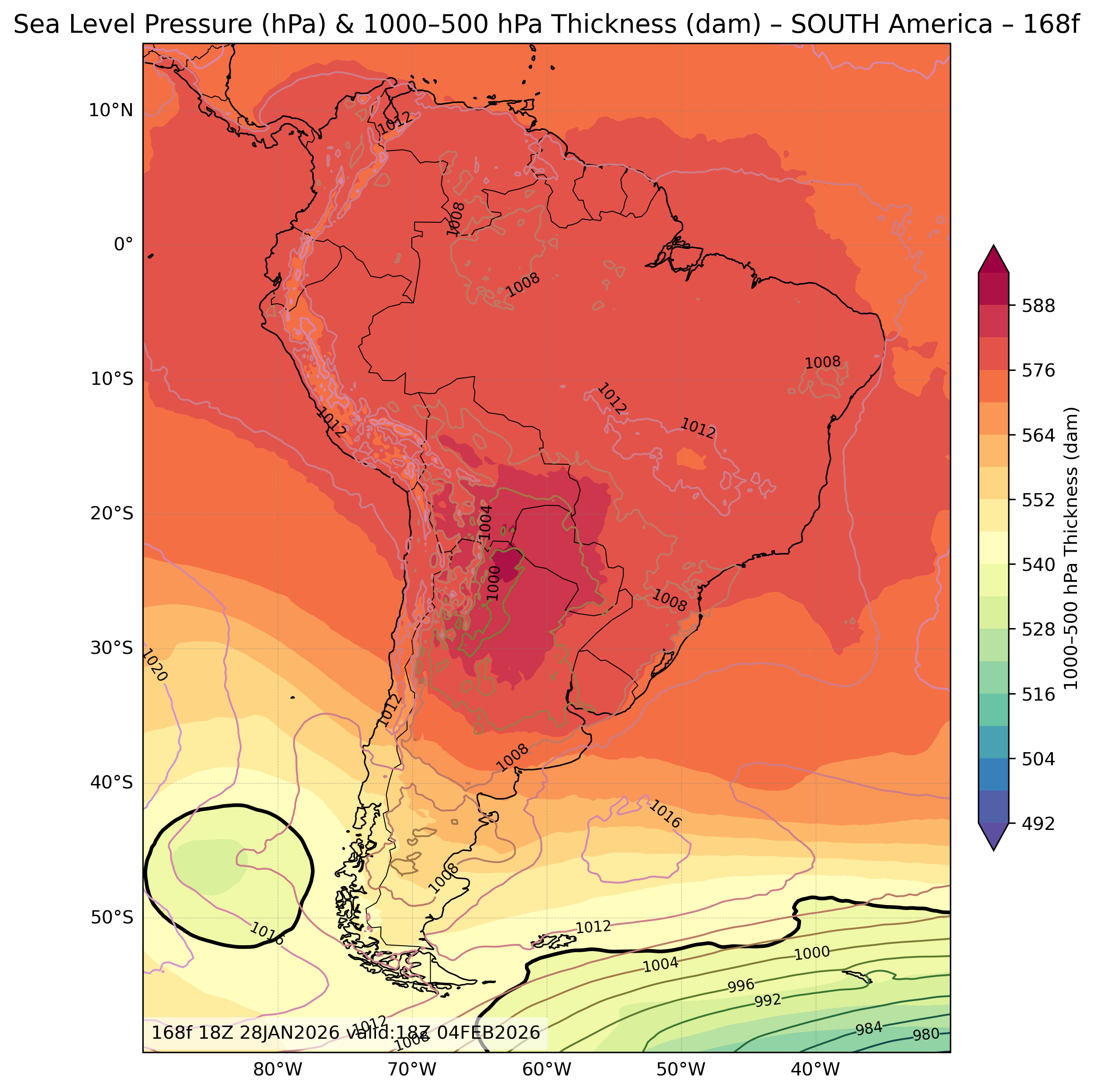 | Sea Level Pressure & 1000-500mb Thickness |