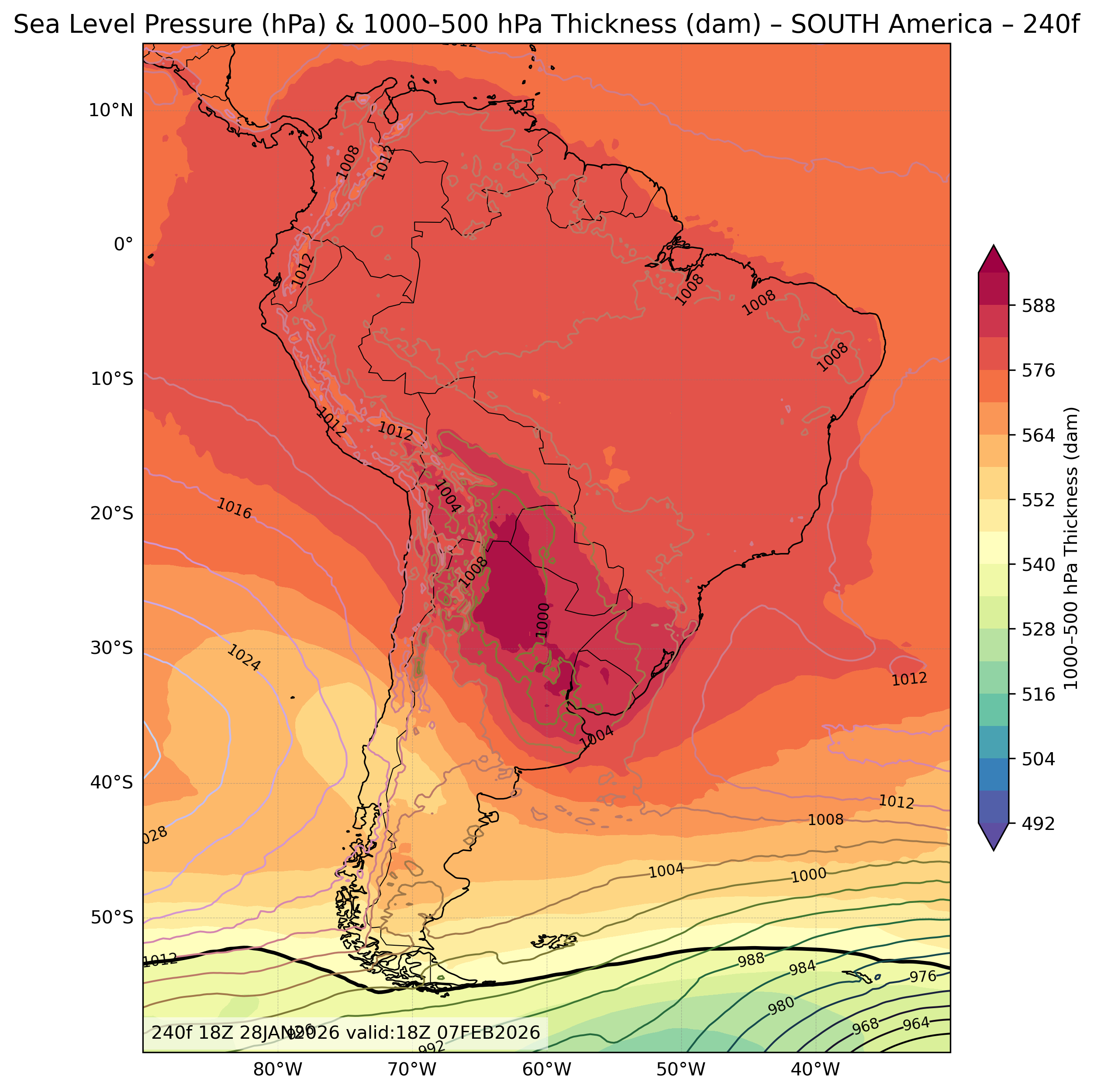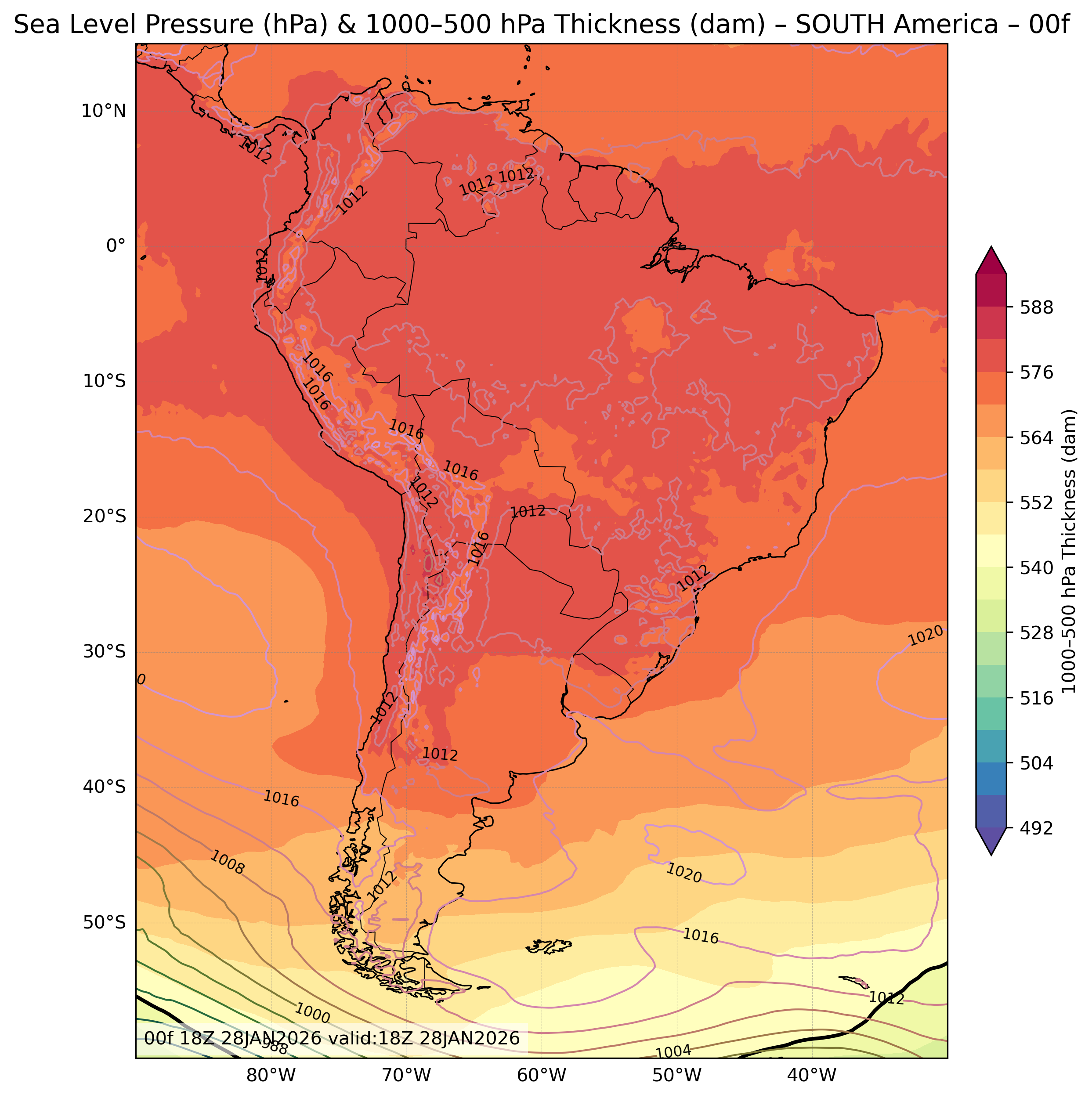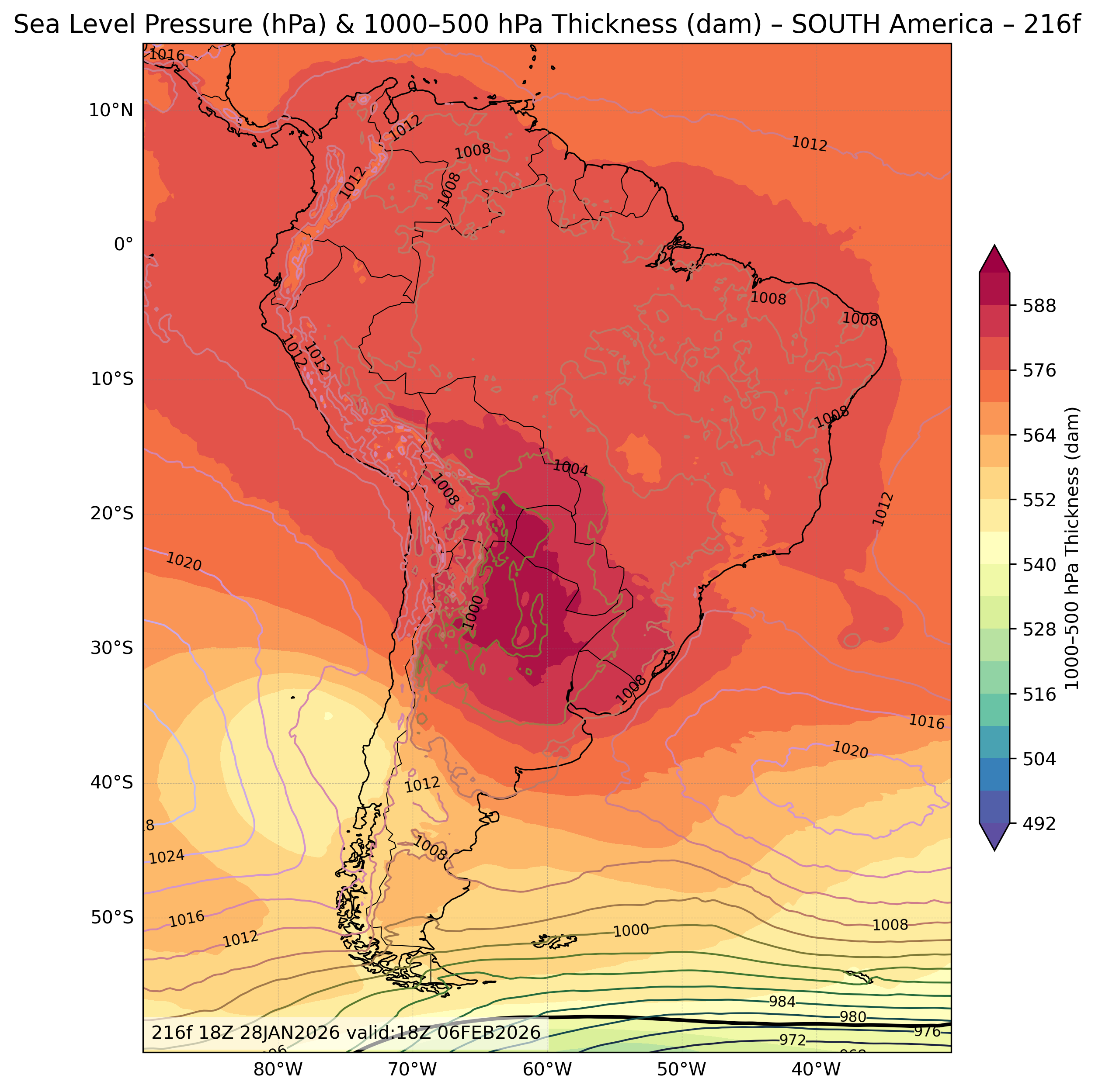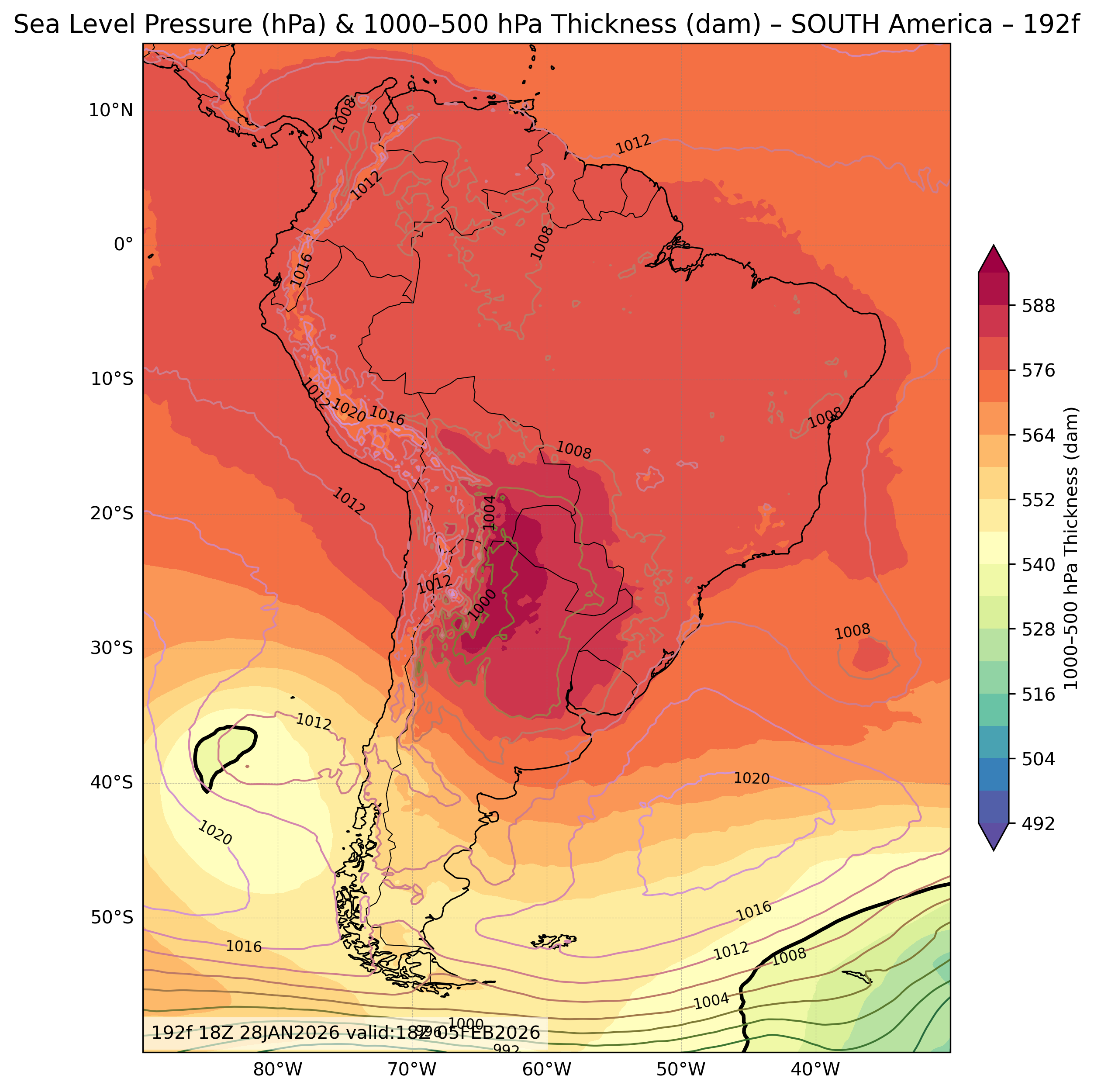 | Sea Level Pressure & 1000-500mb Thickness |