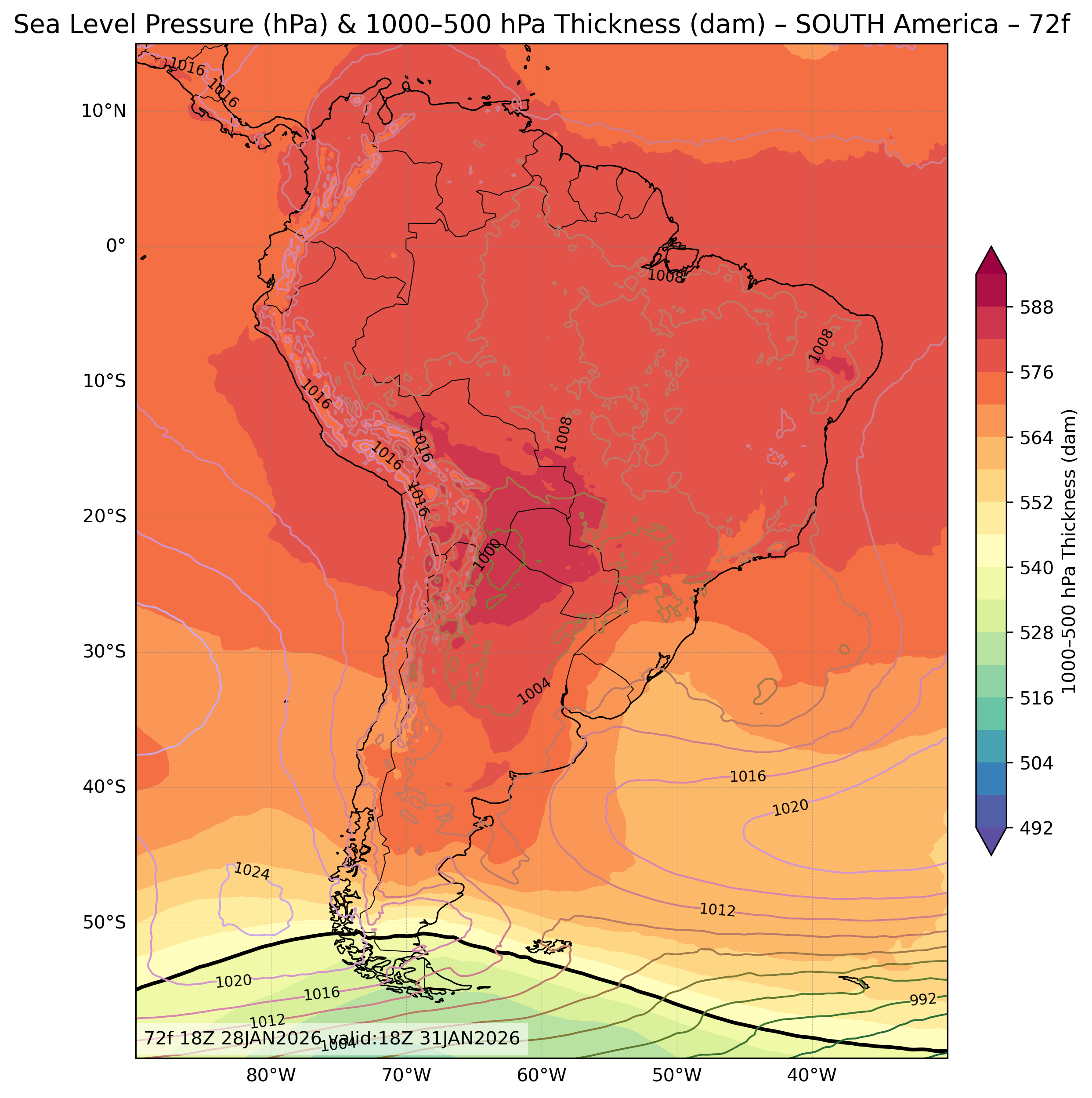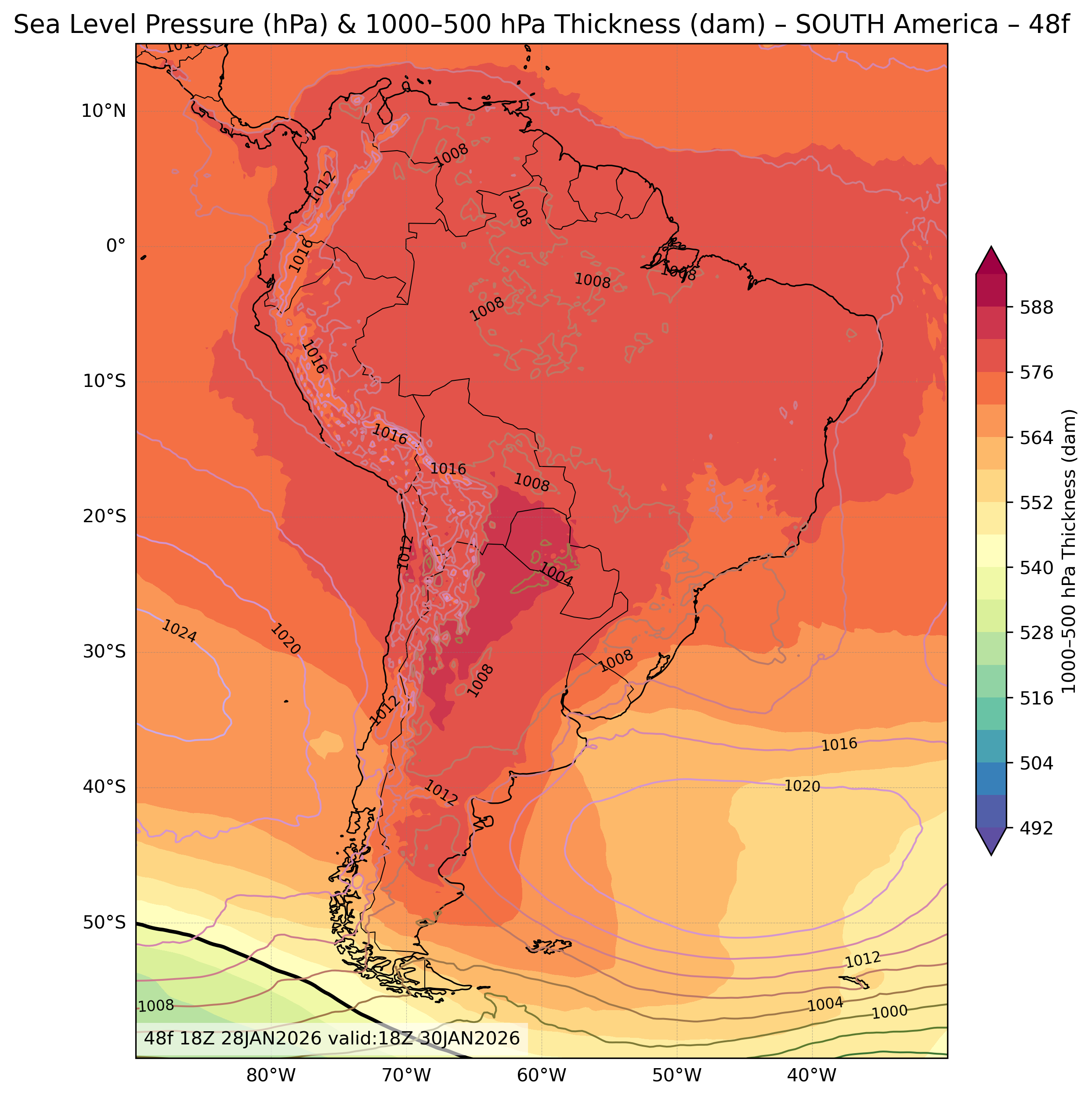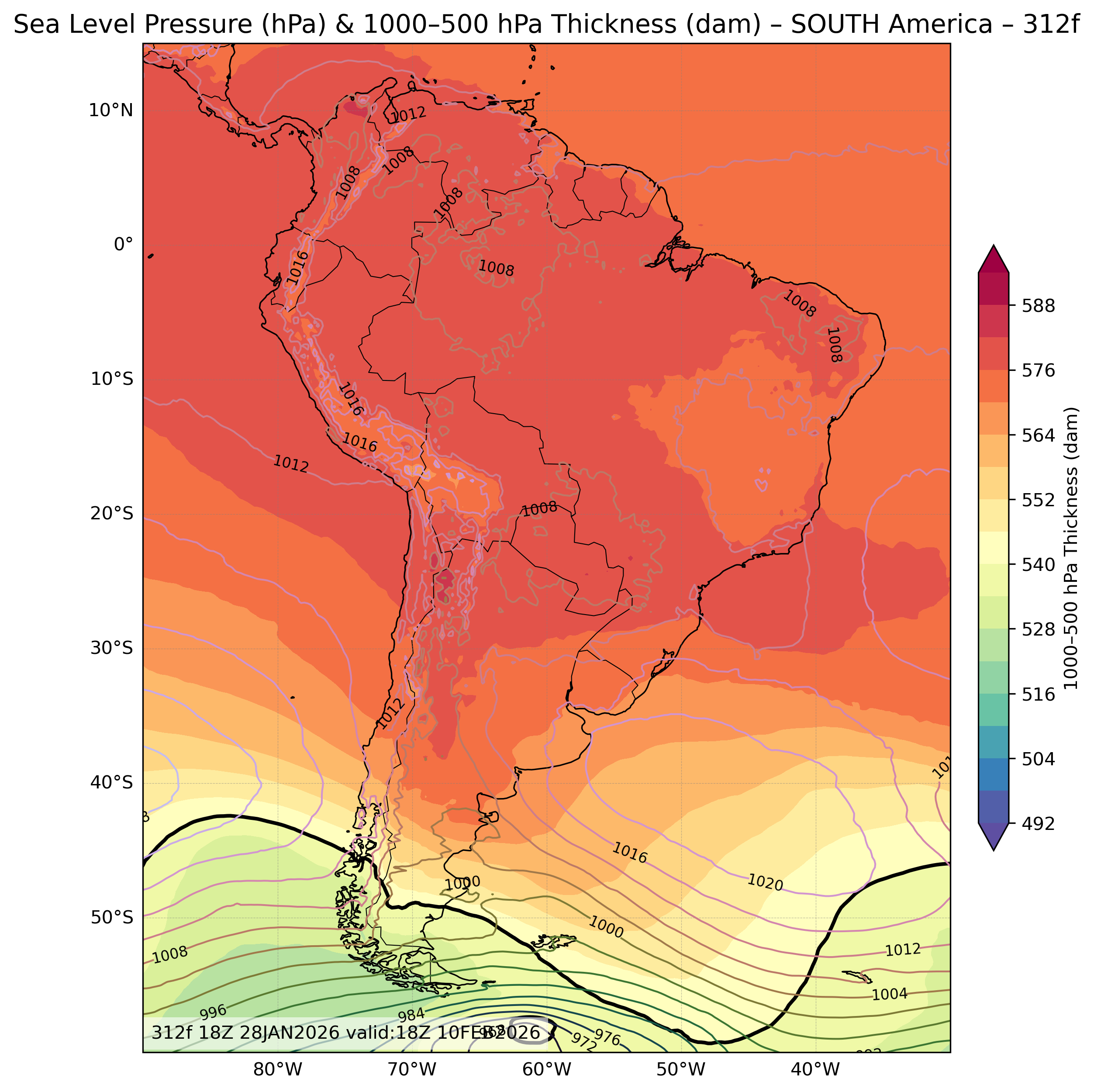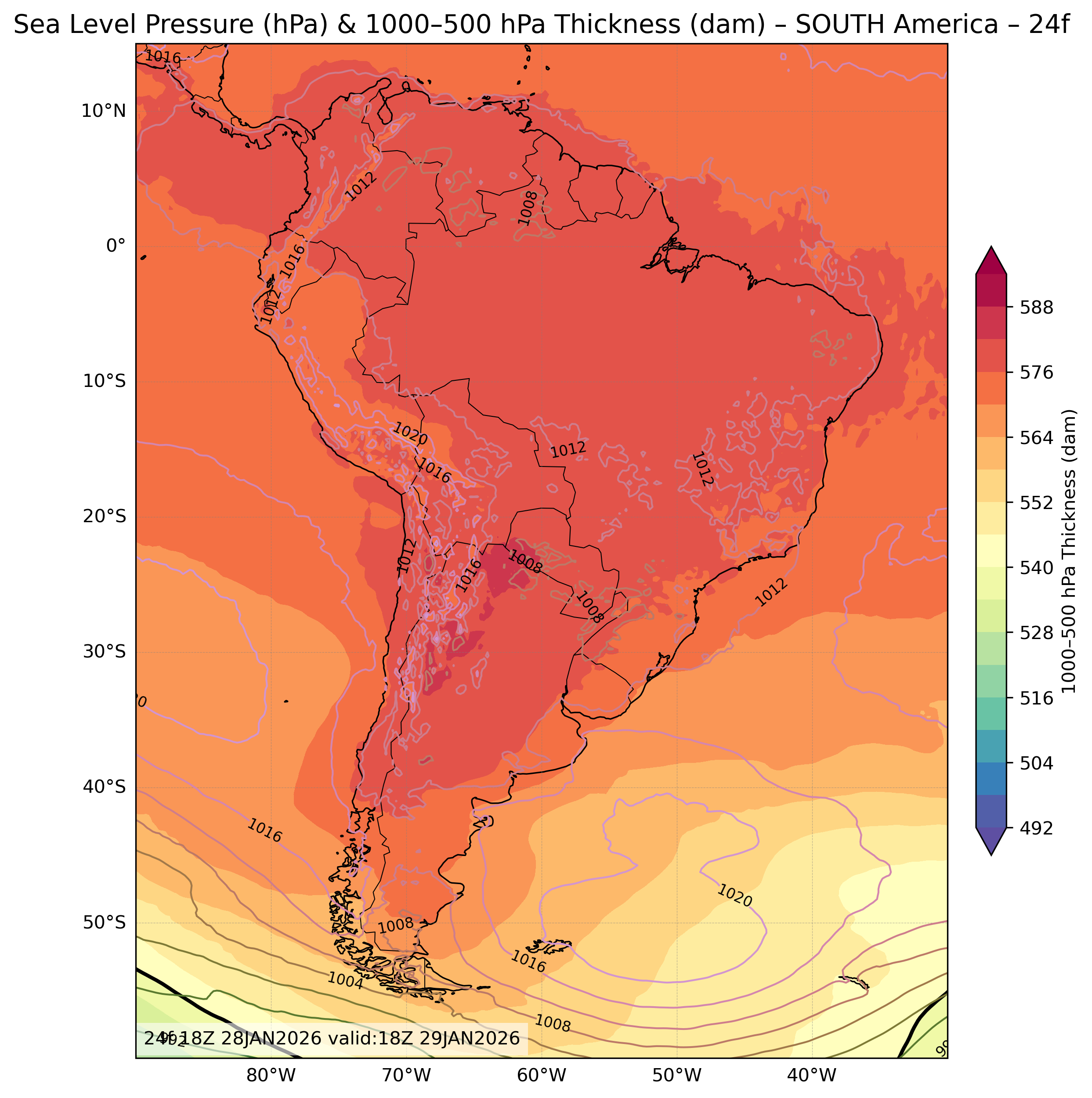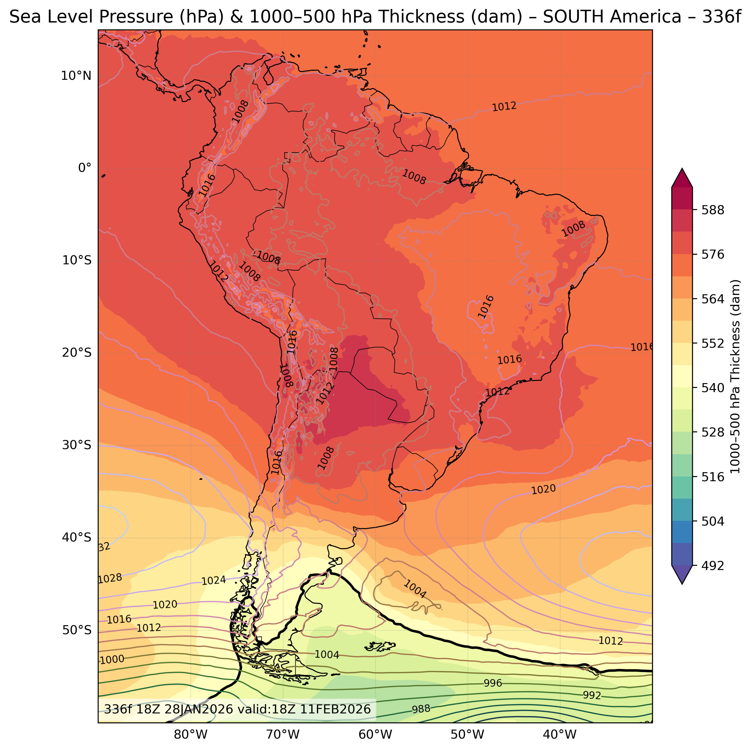 | Sea Level Pressure & 1000-500mb Thickness |
