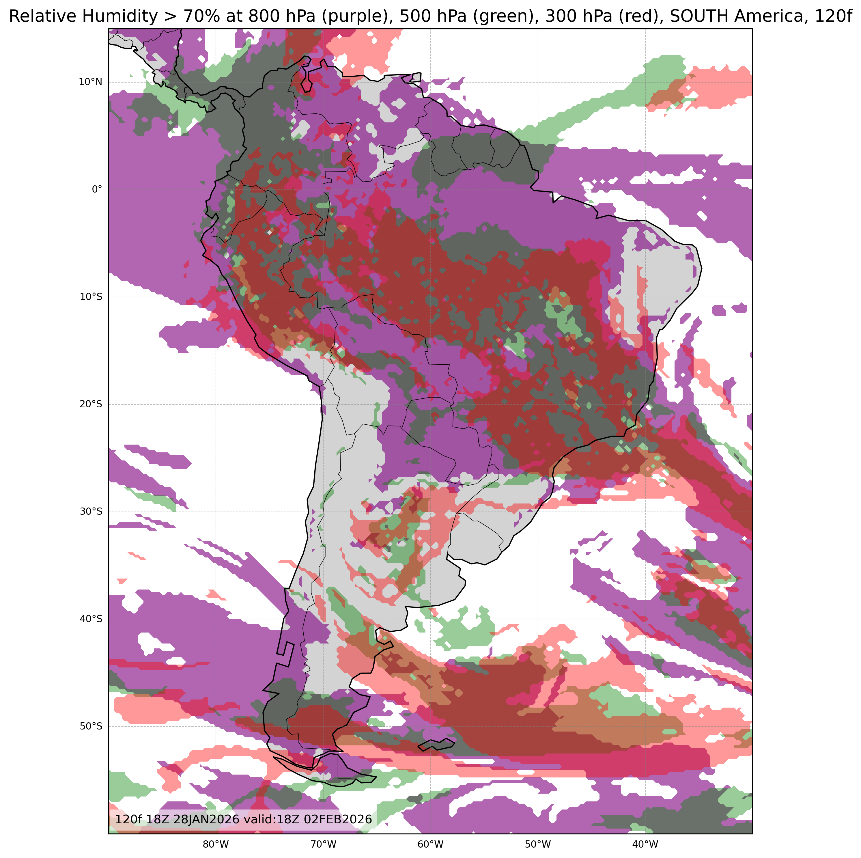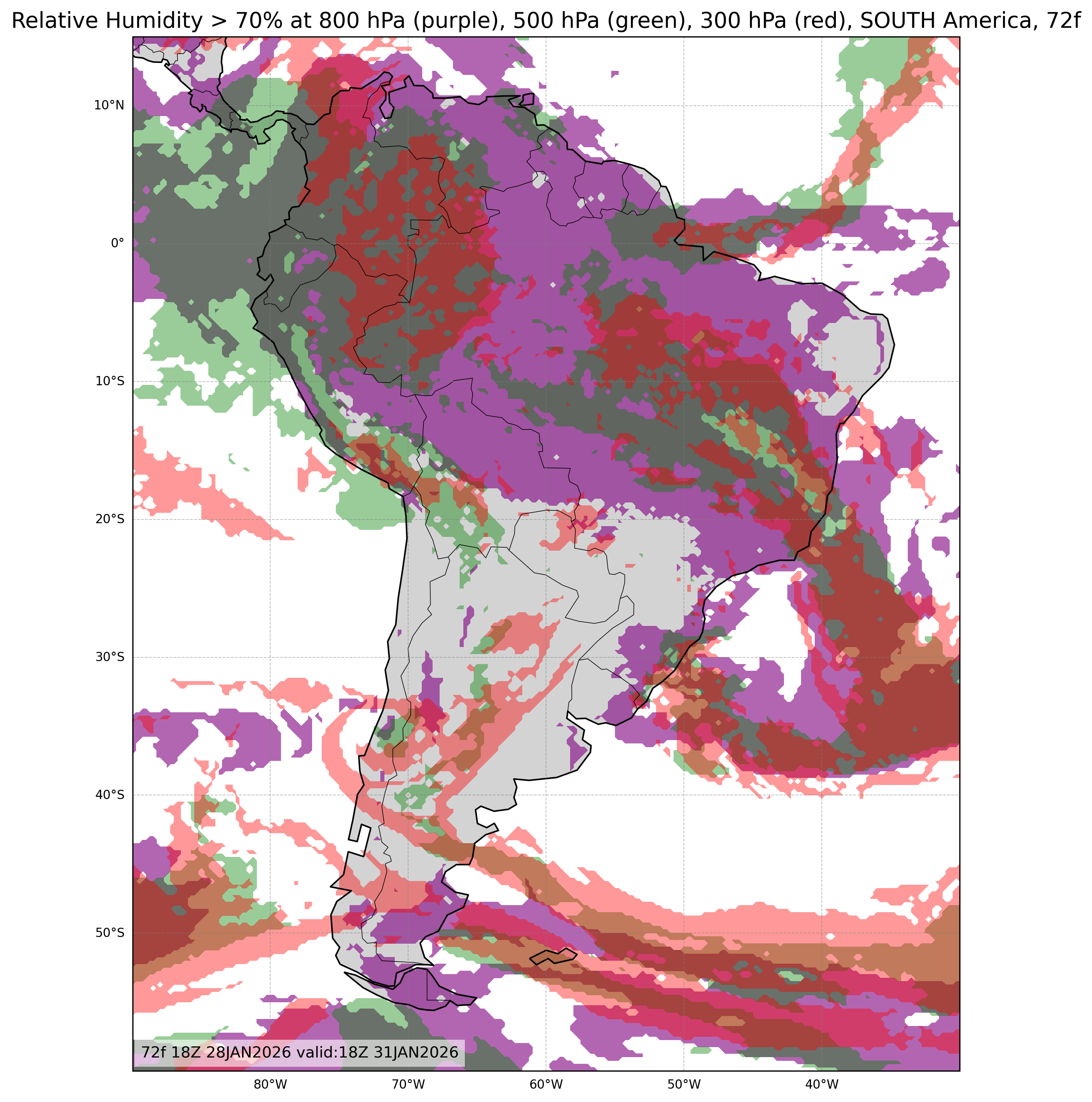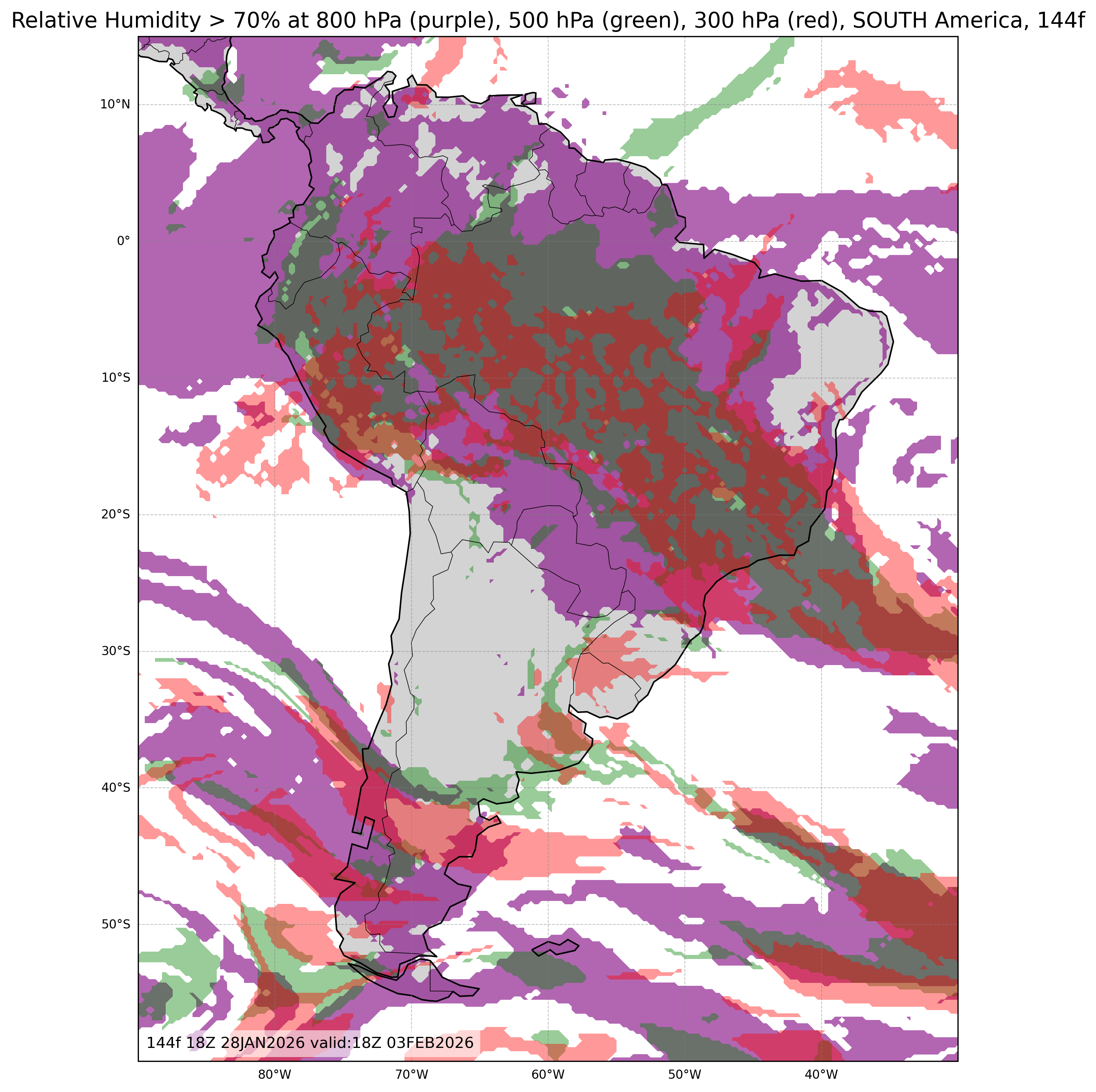 | Relative Humidity at 800, 500, & 300mb or Low, Middle, & High Cloud Cover |